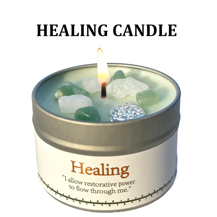Lavender Eucalyptus Scented Candle, Healing Ritual Crystals,
